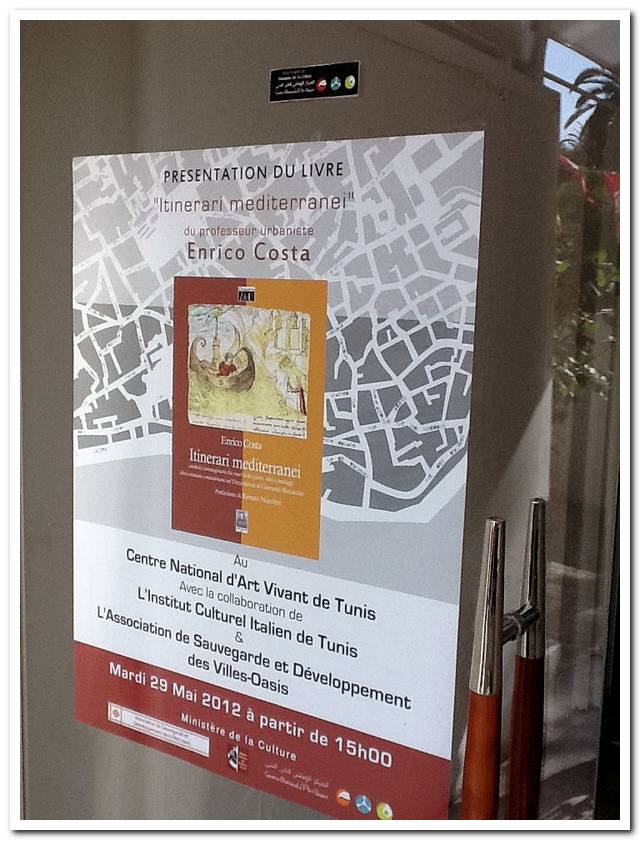 Il pomeriggio del 29 maggio, Enrico Costa, professore di Urbanistica, ha presentato il suo ultimo libro presso il Centre National d’Art Vivant Zoubeir Turki, struttura del Ministère della Cultura a Tunisi–Belvédère diretta dalla dinamica Sana Tamzini.