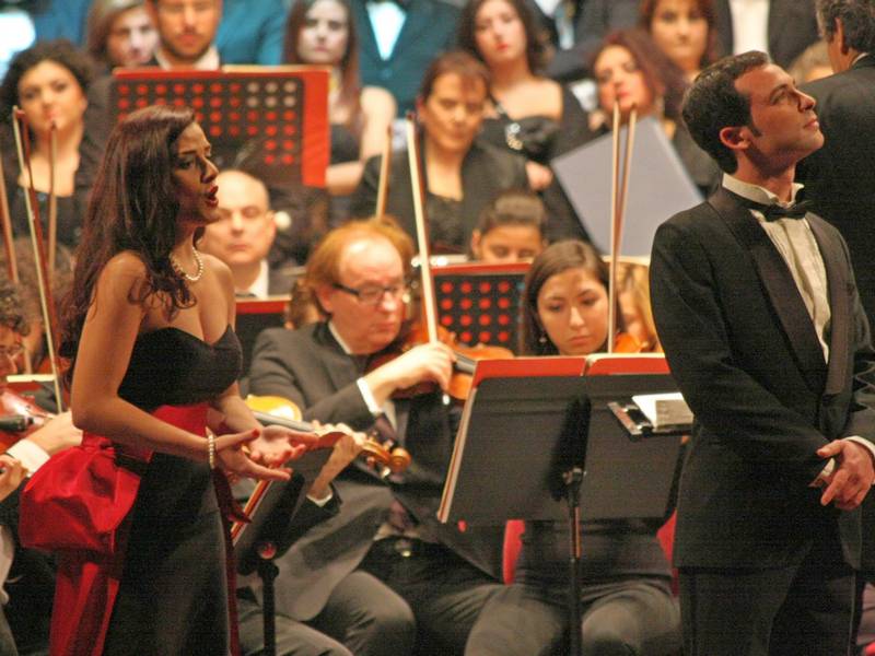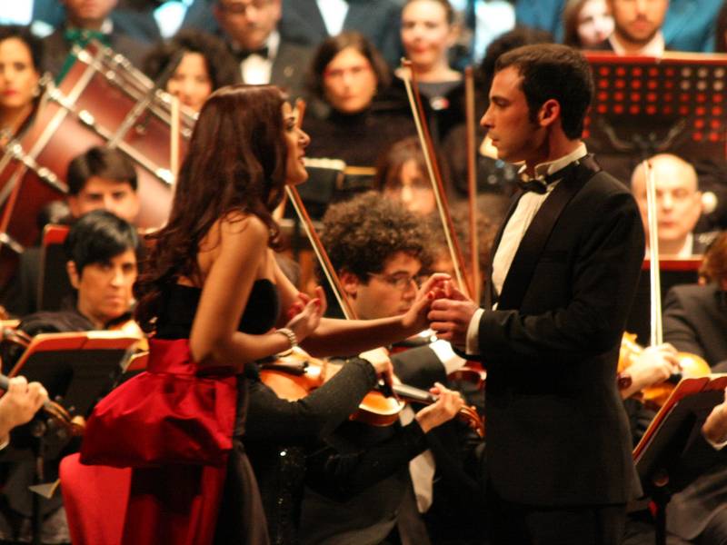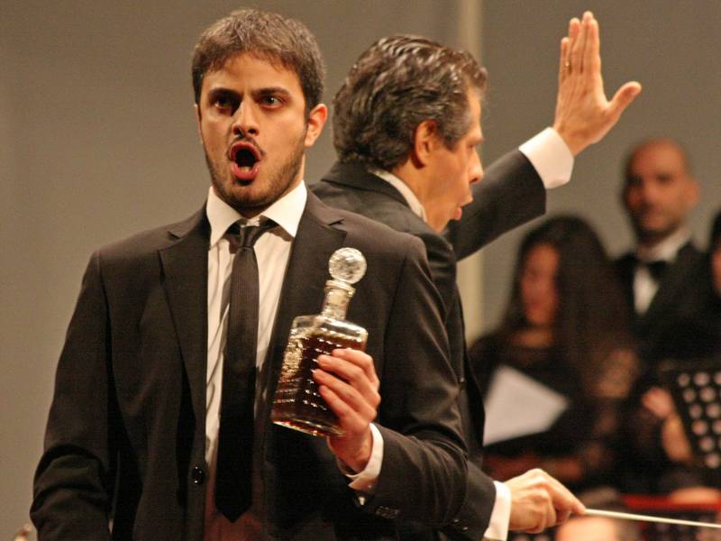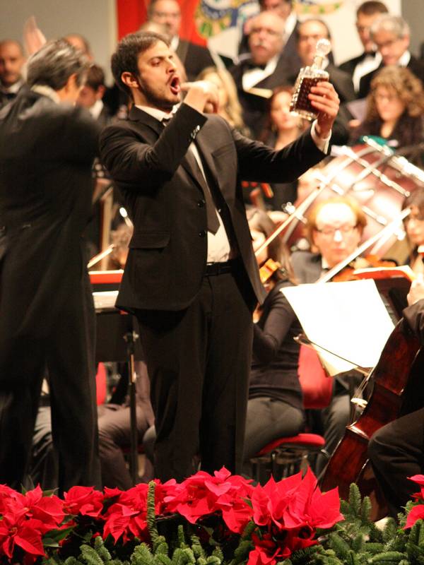 Quasi due ore di musica nel programma diviso in due parti. La prima basata sulle arie più celebri dell'Elisir d'Amore di Gaetano Donizetti. Introdotti dal coro, Giuseppe Distefano (Nemorino), Adina e Giannetta(Pamela Chiriaco e Silvia Ielo), Belcore e un ottimo Vincenzo Nizzardo nei panni del dottor Dulcamara a brandire l'elisir miracoloso. A completare il cast Alessio Goldstein Gatto.