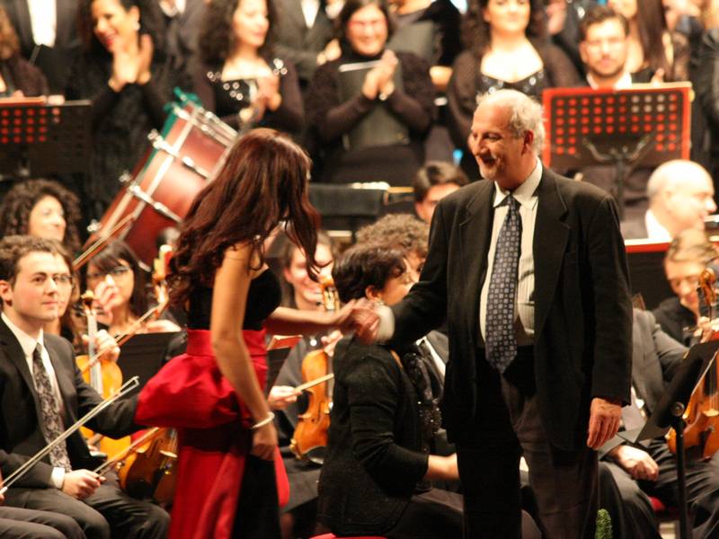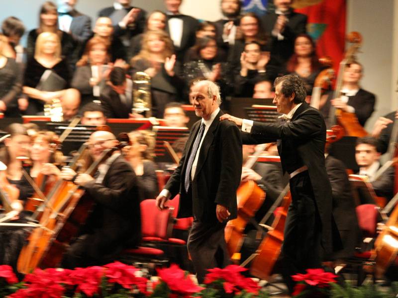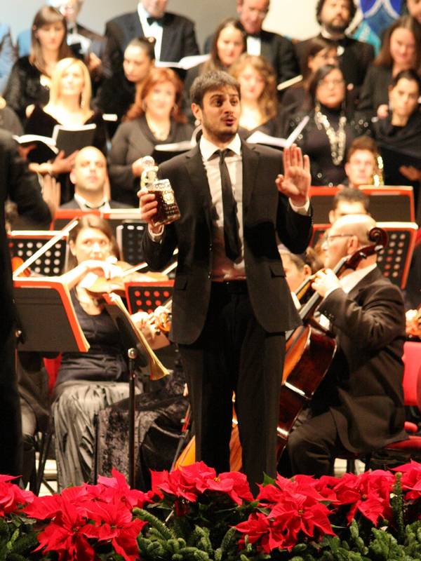 Ottimo equilibrio nella direzione tra il tono giocoso della prima parte e l'accelerazione sul tema natalizio della seconda. Il maestro Presutti ha condotto coro e orchestra dal romanticismo del "Và pensiero" ai classici "Amazing grace" e "White Christmas" per chiudere sempre con Verdi a calici alzati.