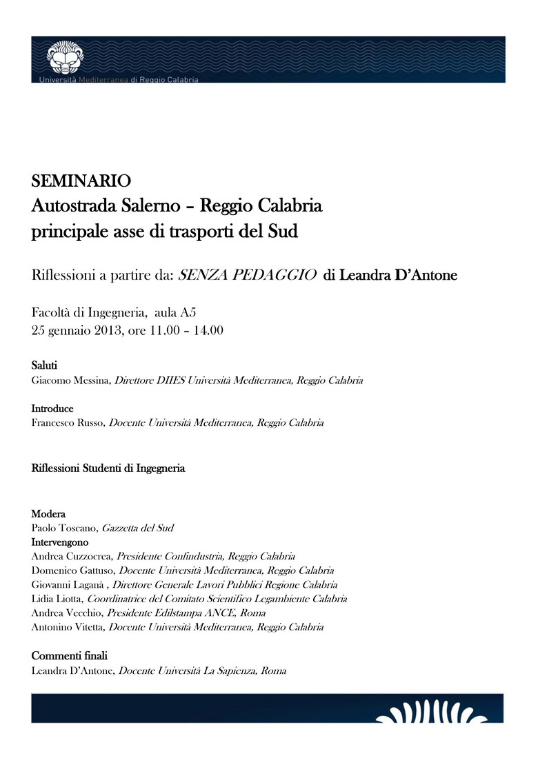 Seminario Autostrada Salerno – Reggio Calabria: principale asse di trasporti del Sud