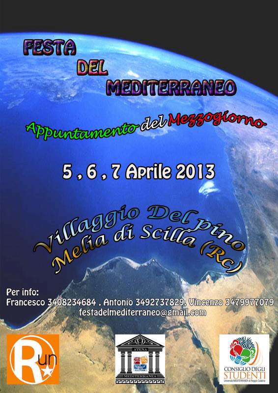 L'associazione Atena Mediterranea organizzata dal 5 al 7 aprile 2013 - la "Festa del Mediterraneo - L'Europa che vorrei" presso il Villaggio del Pino 4 stelle a Melia di Scilla. All'appuntamento prenderanno parte diversi docenti dell'Università Mediterranea e rappresentanti delle istituzioni nazionali e internazionali.
