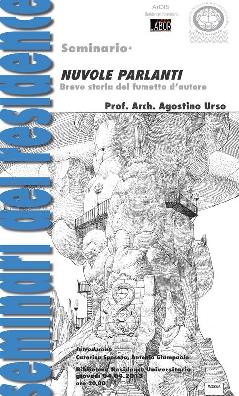 Giovedì 4 aprile alle ore 20,00 si terrà presso il Residence universitario il quarto dei “Seminari del Residence” dal titolo “NUVOLE PARLANTI. Breve storia ragionata del fumetto d’autore”, una ricognizioe sul fumetto d’autore italiano e statunitense tra evoluzione della ricerca grafica e rappresentazione della società occidentale.