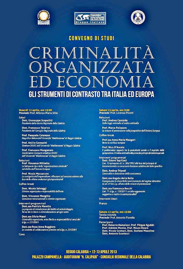12-13 aprile Criminalità organizzata ed economia: gli strumenti di contrasto tra Italia ed Europa - convegno