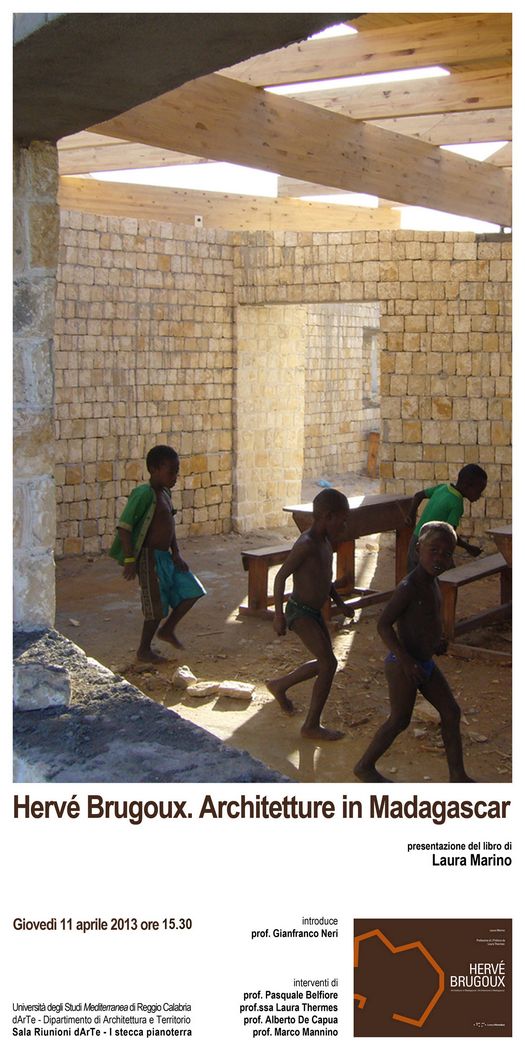 Giovedì 11 aprile alle ore 15.30 presso la sala riunioni del dArTe _dipartimento di Architettura e Territorio – Università Mediterranea di Reggio Calabria presentazione del libro “Hervè Brugoux. Architetture in Madagascar” di Laura Marino.