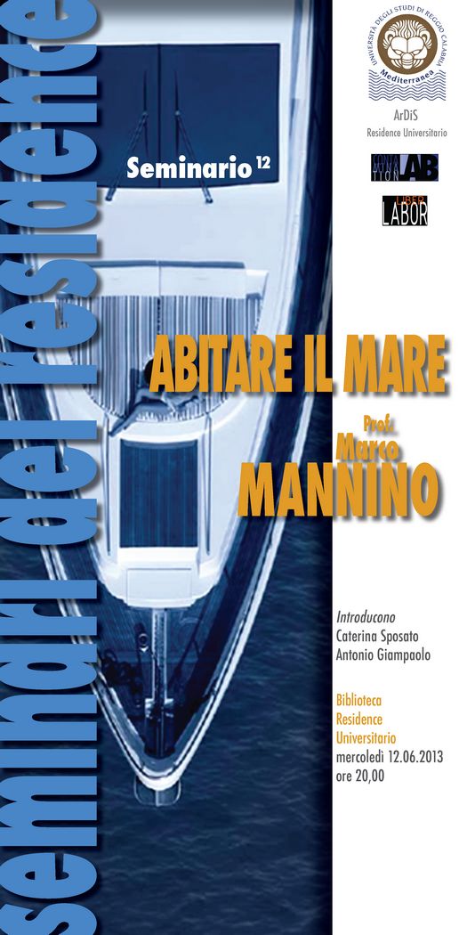 Mercoledì 12 giugno alle ore 20,00 si terrà, presso il Residence Universitario, il dodicesimo dei “Seminari del Residence” dal titolo: “ABITARE IL MARE”.
