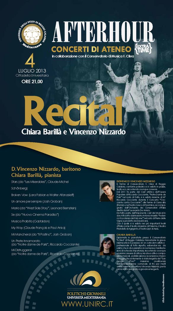 4 luglio Concerto di Ateneo Afterhour con Nizzardo e Barillà