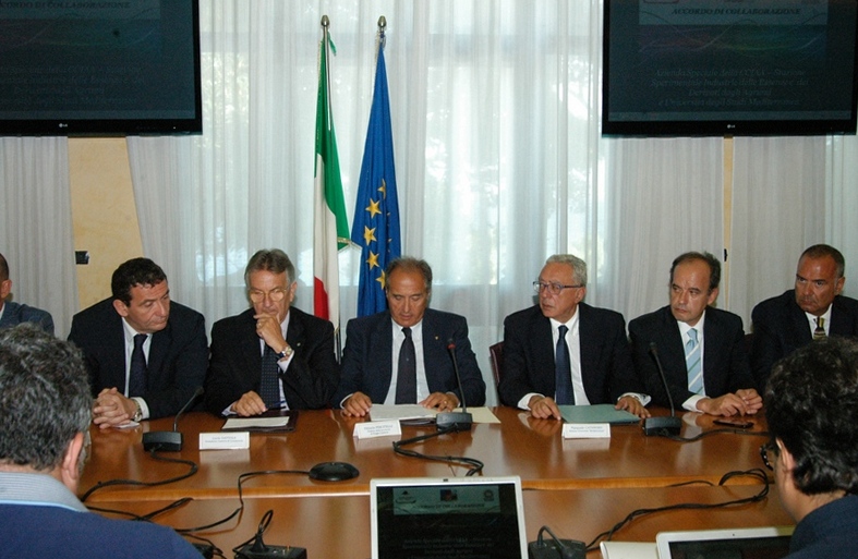 Presenti alla conferenza anche il Commissario del Comune Castaldo, le delegazioni di Camera di Commercio e Mediterranea, oltre ai rappresentanti del mondo produttivo.