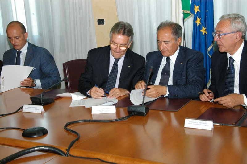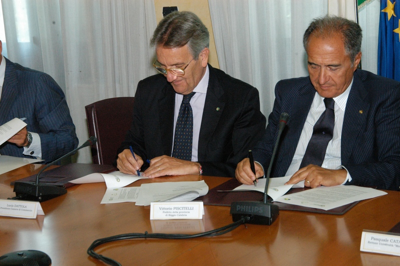 S.E. il Prefetto Piscitelli ha avviato la conferenza stampa di questa mattina nel Salone degli Stemmi della Prefettura e posto il sigillo all’Accordo di collaborazione sottoscritto dal presidente della Camera di Commercio Lucio Dattola e il rettore della Mediterranea Pasquale Catanoso.