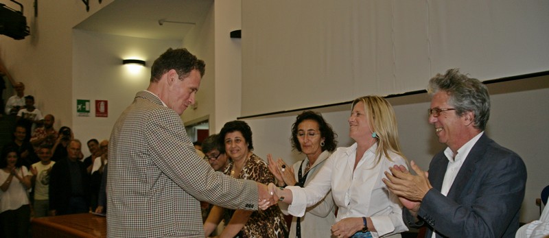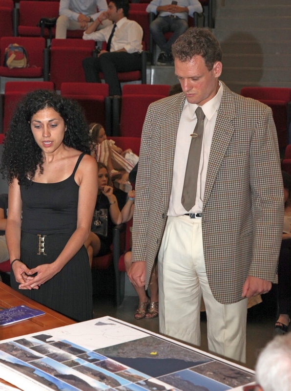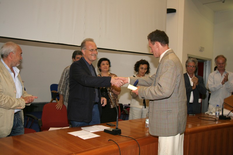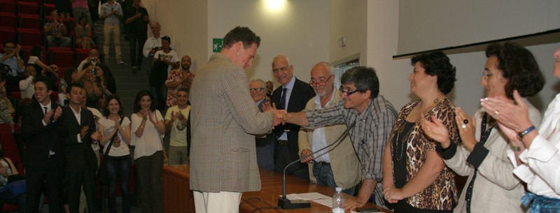 La cerimonia si è svolta a chiusura della seduta di laurea condotta dalla commissione – composta dai proff. G. Donin (pres.), V. Amadio, M. Arena, D. Colafranceschi, G. Ginex, A. Monaco e C. Trombetta – che ha seguito la discussione della tesi di Alberto D’Angelo dal titolo “Il parco della montagna del Taco a Tenerife” (rel. prof. Colafranceschi, correl. arch. Condurso) proclamandolo dottore in Architettura con la votazione di 110/110 e lode. La premiazione si è svolta dinnanzi ad un’aula magna gremita che, dopo aver applaudito i 13 nuovi dottori in architettura, ha tributato ad Alberto una interminabile ovazione.