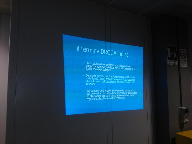 "Non serve strappare le pagine della vita, basta saper voltare pagina e ricominciare" si legge in una slide proiettata ad un corridoio gremito di giovani desiderosi di conoscere la storia di chi il fascino (ed il terribile inganno) della droga l’ha subito, ma da quel giogo ne è venuto fuori ed ora vuole solo “farsi la Comunità”.