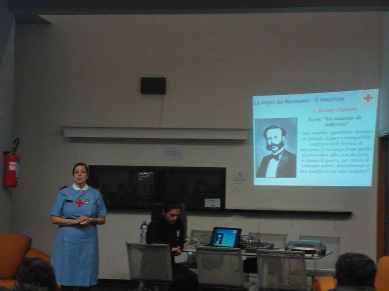 La dott.ssa La Manna e Antonio Frulio hanno spiegato le origini e la mission della Croce Rossa Italiana, realtà, esistente ormai in oltre 300 Stati del mondo. Hanno poi discusso del diritto internazionale umanitario e di quanto esso sia salvifico nei conflitti fra le nazioni.