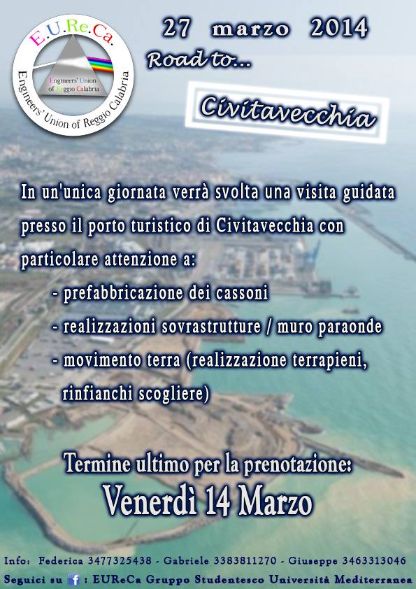 L'associazione studentesca Eureca, in collaborazione con il laboratorio di ingegneria marittima Noel nelle figure dei professori Arena e Barbaro dell'Università Mediterranea, propone una visita guidata al cantiere del nuovo porto turistico di Civitavecchia.