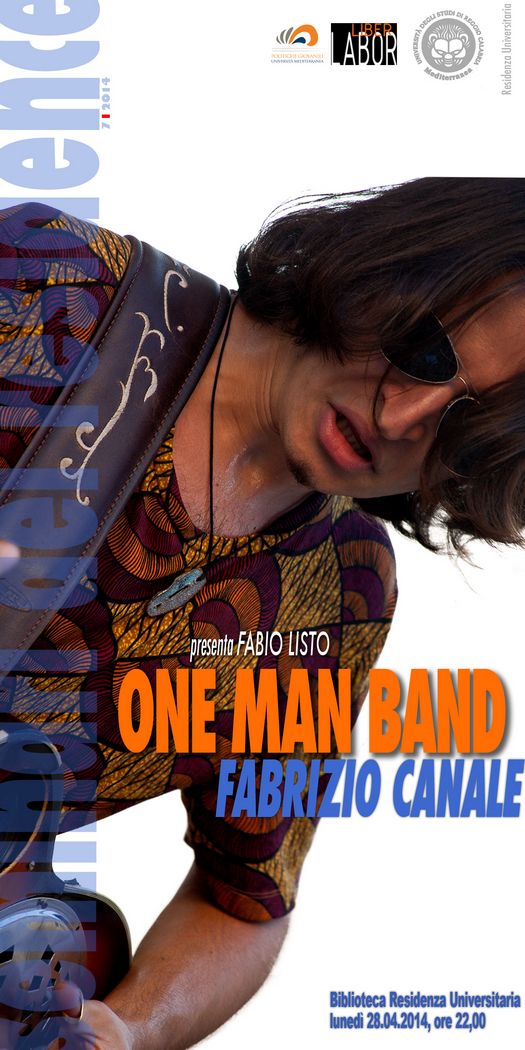 Fabrizio Canale è un artista di strada emigrante da Reggio Calabria. Un “One Man Band” che suona blues per le strade di tutta Europa con la sua chitarra, la sua armonica e la valigia di cartone usata come tamburo. Ha realizzato il proprio sogno di diventare un musicista, regista e colonna sonora della propria esistenza. Alla Residenza Universitaria presenterà il suo nuovo disco.