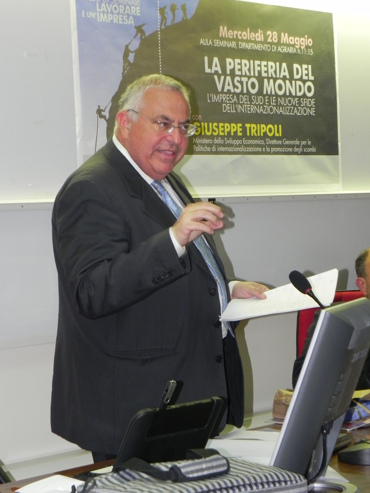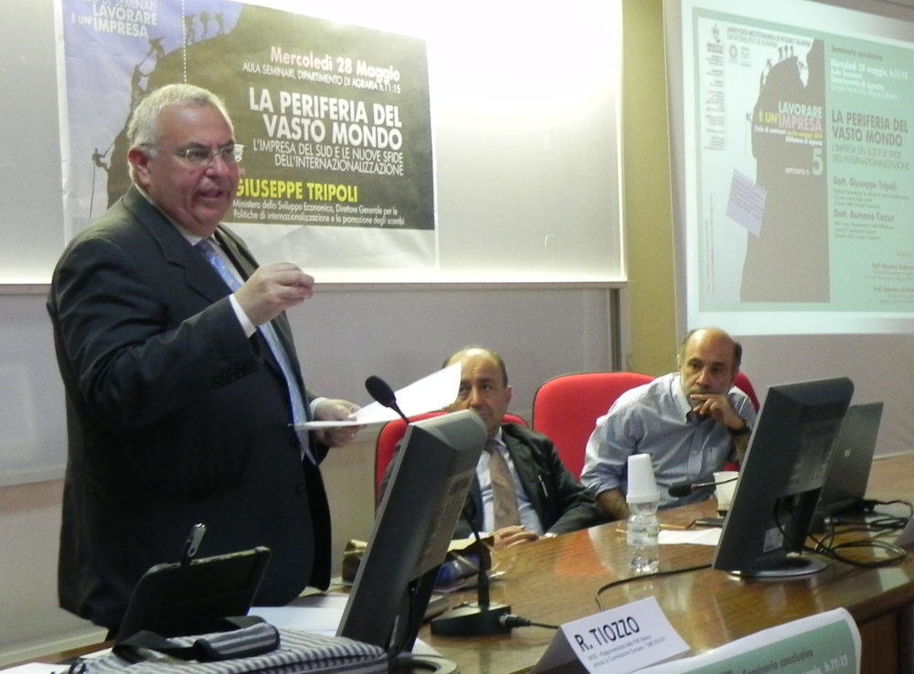 Si è concluso Mercoledì 28 maggio il ciclo di seminari “Lavorare è un’impresa”, promosso dalla Biblioteca del Dipartimento di Agraria dell’Università Mediterranea di Reggio Calabria. Il seminario finale ha avuto per tema “La periferia del vasto mondo: l’impresa del sud e le nuove sfide dell’internazionalizzazione”. Protagonisti ne sono stati due relatori di eccezione, entrambi del Ministero dello Sviluppo Economico: il dott. Giuseppe Tripoli, Direttore Generale per le politiche di internazionalizzazione e la promozione degli scambi, e il dott. Romano Tiozzo, Rappresentante delle PMI italiane presso la Commissione Europea.