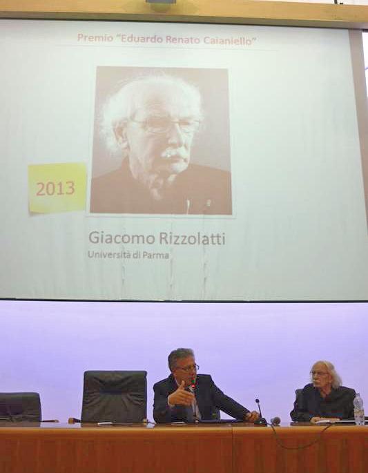 Il professor Giacomo Rizzolatti ha ricevuto a Reggio Calabria il Premio “E.R. Caianiello” (2013) per l’Eccellenza nella ricerca scientifica sulle Reti Neurali. La cerimonia di consegna si è svolta l'11 giungo alle ore 10.00 presso l'Aula magna di Architettura della Mediterranea.
