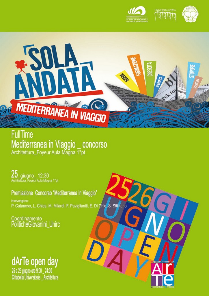 Durante gli Open Days di Architettura, mercoledì 25 giugno, si è svolta la premiazione del concorso collegato al cineforum "Mediterranea in viaggio" nel Foyer dell'Aula Magna alle 12.30.