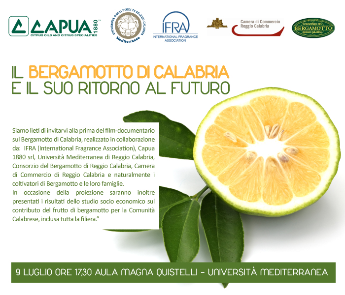 Prima proiezione del film-documentario sul Bergamotto di Calabria, realizzato in collaborazione da: IFRA (International Fragrance Association), Capua 1880 srl, Università Mediterranea di Reggio Calabria, Consorzio del Bergamotto di Reggio Calabria, Camera di Commercio di Reggio Calabria e naturalmente i coltivatori di Bergamotto e le loro famiglie.