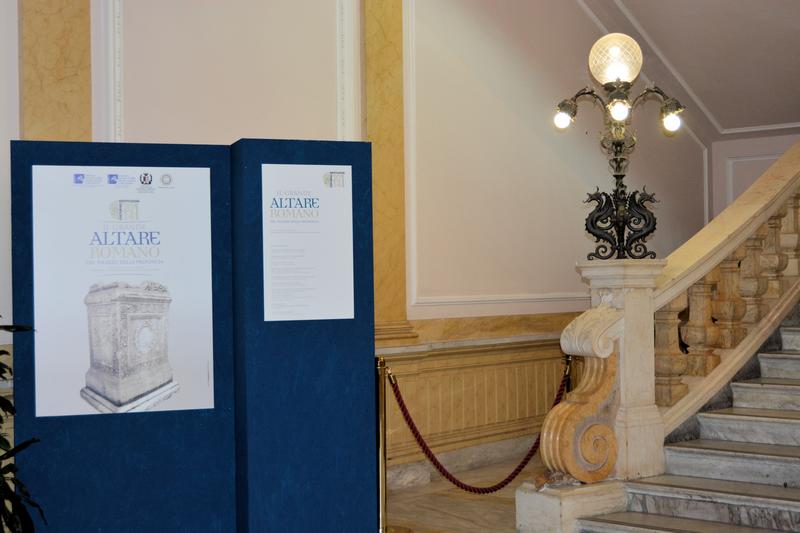 L’allestimento, curato da Carmelo G. Malacrino, ricercatore e docente di Storia dell’Architettura presso l’Ateneo reggino, mira a valorizzare, a un secolo dalla scoperta, uno dei reperti marmorei più rilevanti e meno noti del patrimonio archeologico della città. Si tratta del grande altare di età romana rinvenuto durante gli scavi per la realizzazione del nuovo Palazzo della Provincia di Reggio Calabria, dopo la distruzione della precedente sede col terremoto del 1908. Collocato sullo scalone monumentale dell’edificio, esso costituisce un’opera di elevato livello artistico, attribuibile a una bottega di scultori operante nel pieno I secolo d.C.