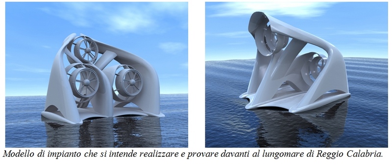 La Figura mostra un esempio di impianto eolico offshore galleggiante. Caratteristiche peculiari di questo impianto sono le turbine “intubate” e lo scafo a trimarano. Il gruppo Avio sta sviluppando la parte elettrica e meccanica dell’impianto presso il Politecnico di Bari e l’Università di Lecce. La parte strutturale (scafo e sovrastruttura) verrà sviluppata dal MEL. Il MEL testerà inoltre il primo prototipo direttamente in mare nello Stretto di Messina.
