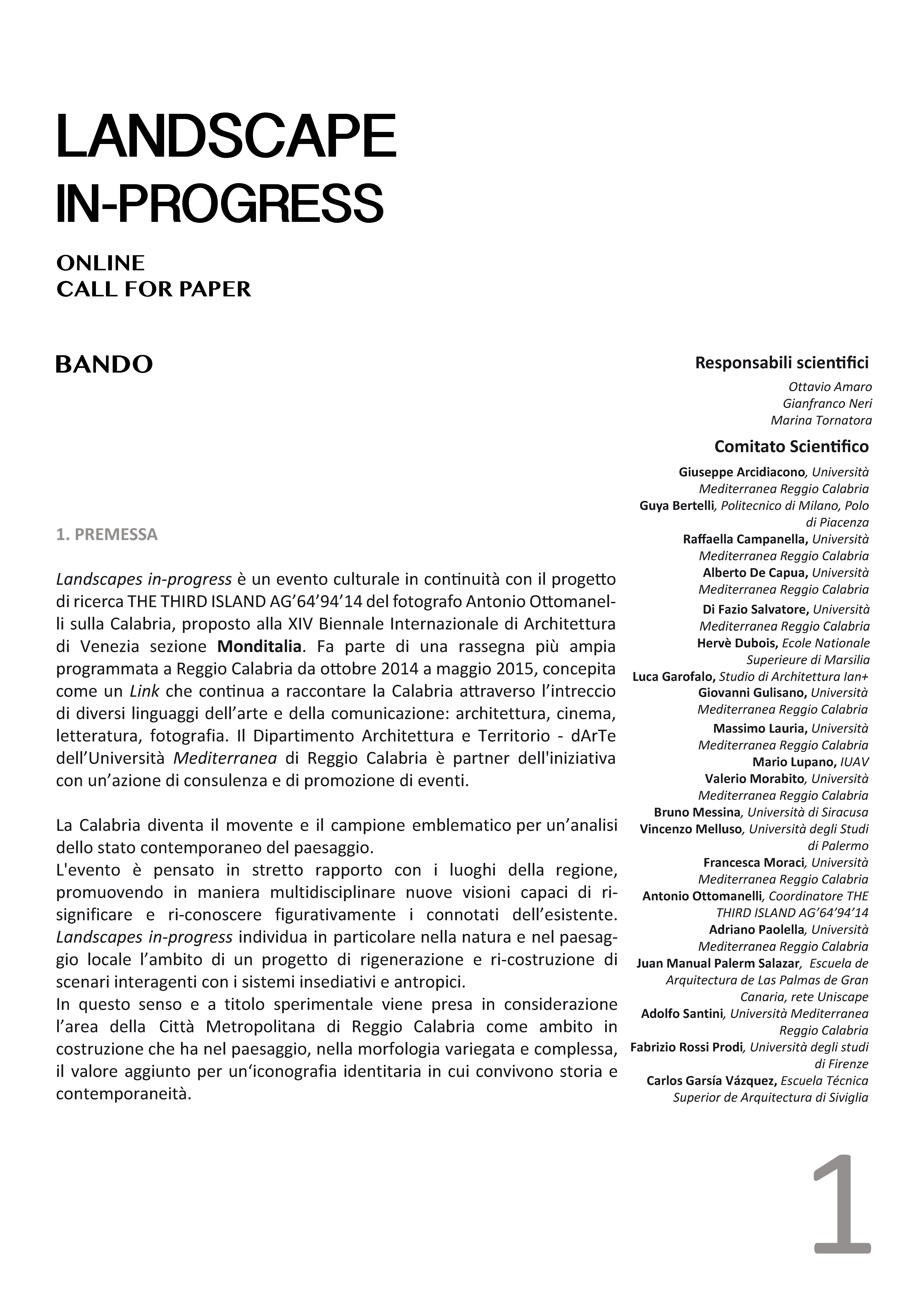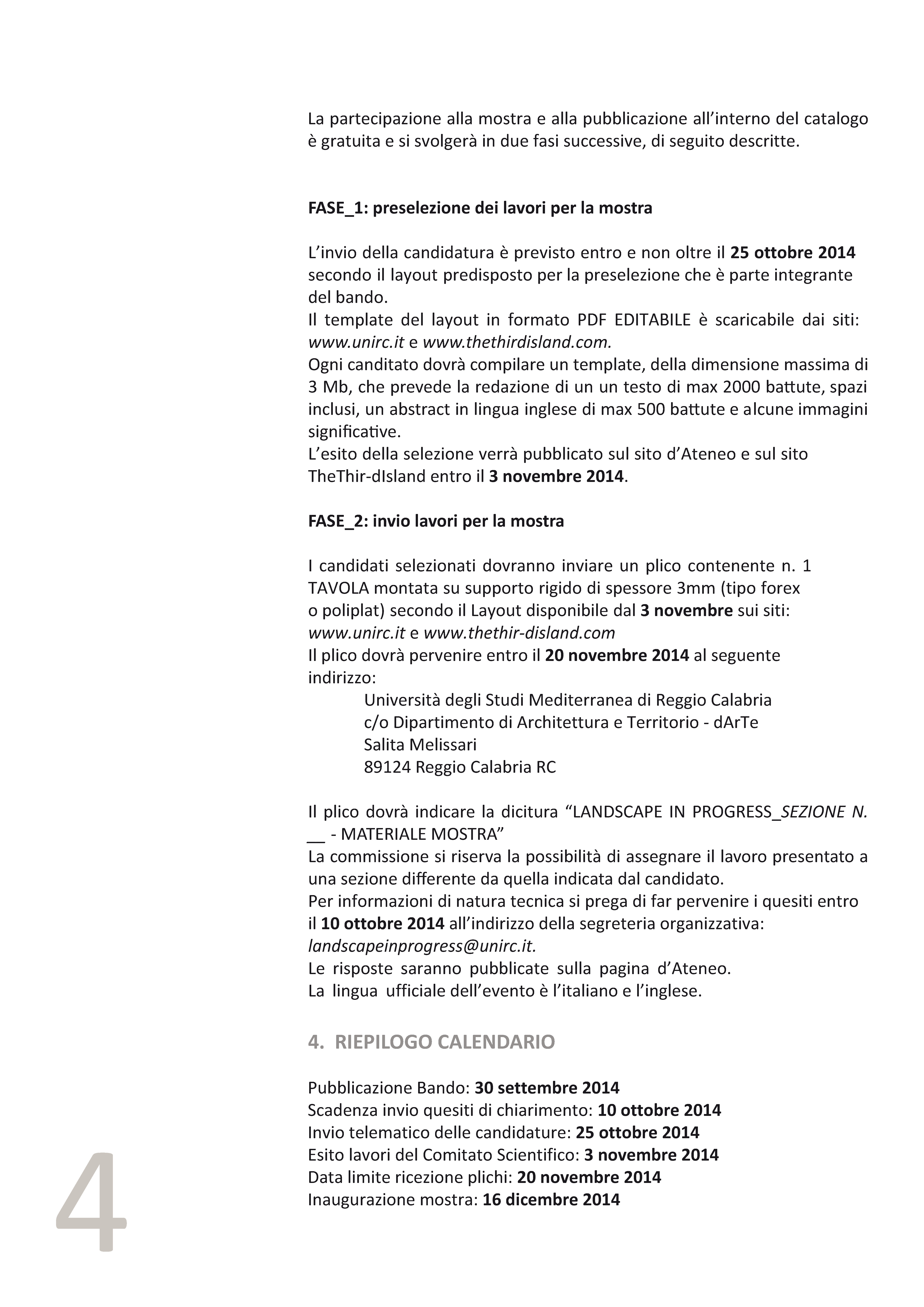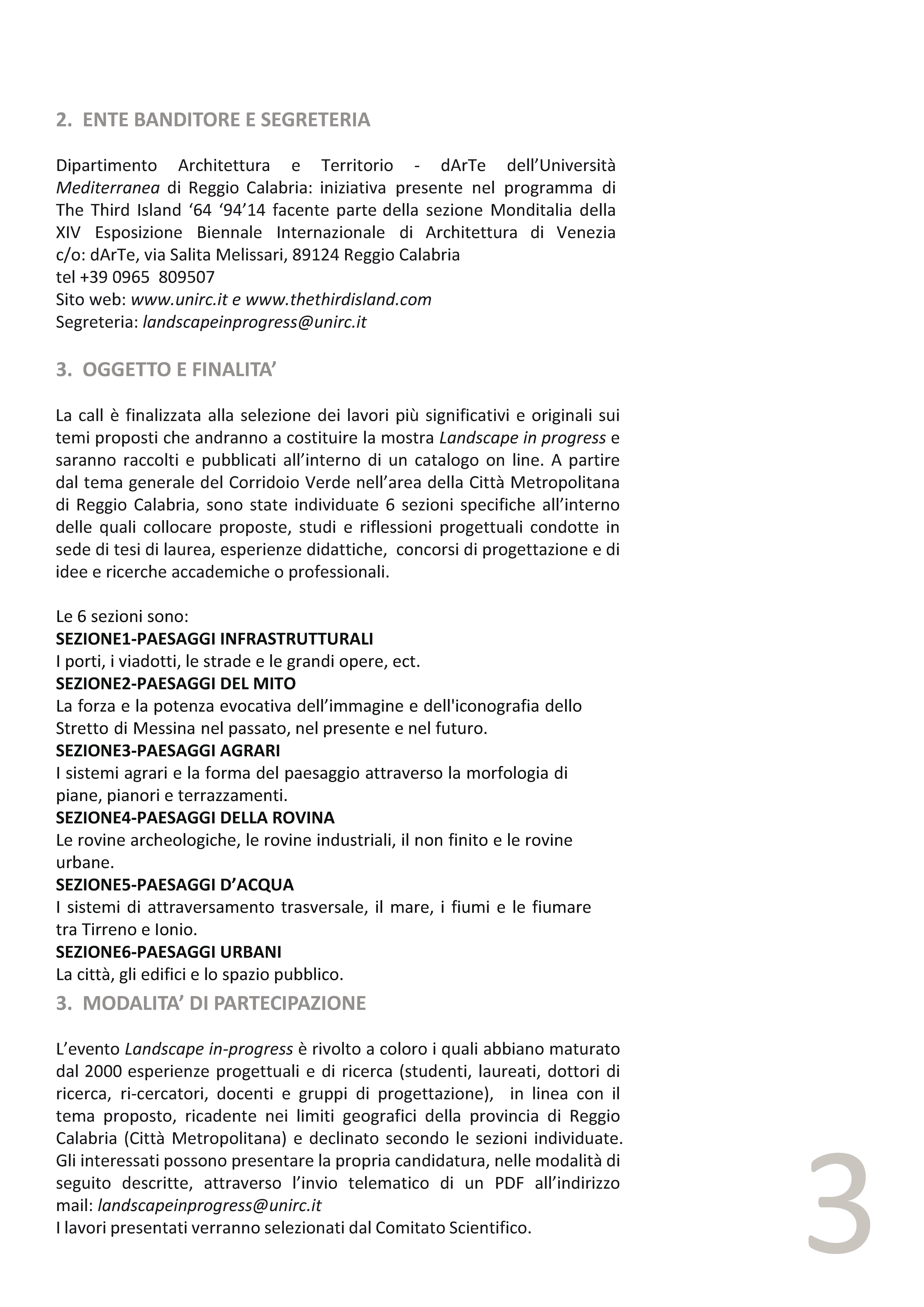 Il plico dovrà indicare la dicitura “LANDSCAPE IN PROGRESS_SEZIONE (da specificare) - MATERIALE MOSTRA”.