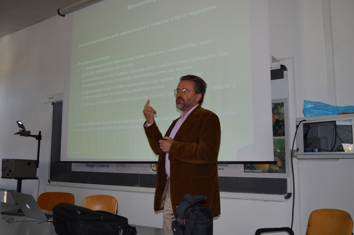 Giovedì 20 Novembre, alle ore 09:30 con grande partecipazione di pubblico, si è tenuto il seminario scientifico curato dal Dott. Serafino Cannavò. Si inizia con i saluti e gli interventi dei due Presidenti dei gruppi micologici, Dott. Teodoro Iaropoli e il Sig. Domenico Porcino, che illustrano sulle attività e i fini delle proprie associazioni, segue il Presidente della confederazione Micologica Calabrese Dott. Francesco Toteda che si compiace dell’iniziativa e sottolinea l’importanza di avere una Confederazione Micologica nella nostra Regione. I lavori proseguono con le tre relazioni in programma trattando argomenti di rilevante importanza scientifica. Inizia il prof. Giovanni Spampinato dell'Università Mediterranea di Reggio Calabria che tratta il tema “Cenosi forestali e funghi: un rapporto indissolubile”, segue il Prof. Gianrico Vasquez delegato del Comitato Scientifico dell'Associazione Bresadola di Trento, che parla di “Funghi velenosi e relative sindromi”, infine il Prof. Giuseppe Sicilia Specialista in Scienze della Nutrizione Umana, che itrattiene brillantemente la platea con il tema “Territorio e Nutrizione”. La grande partecipazione degli studenti dimostra la forte valenza informativa e scientifica dei lavori nonché la grande curiosità che il mondo dei funghi riesce a riscuotere.
