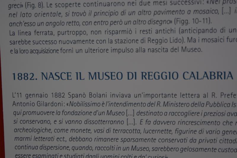 Nell’imminenza della realizzazione del nuovo allestimento museale nel rinnovato edificio piacentiniano e della riforma del Ministero dei Beni e delle Attività Culturali e del Turismo, che comporterà dopo sessant’anni la separazione del Museo dalla Soprintendenza, questa mostra vuole illustrare, attraverso documenti, foto e oggetti, la storia del lungo e complesso rapporto fra Reggio e le sue antichità. Il percorso espositivo inizia con la narrazione delle vicende, talvolta piuttosto articolate, che portarono la città prima a prendere coscienza del proprio illustre passato e poi a dotarsi di un museo in cui conservare ed ammirare le testimonianze materiali di tale passato. Prosegue con l’illustrazione della storia del Museo Civico e dei suoi personaggi, nonché della vivace dialettica tra Stato e Comune sul patrimonio archeologico, per arrivare alla creazione del nuovo Museo Nazionale con il tormentato progetto di Marcello Piacentini, fino ai successivi sviluppi dell’istituzione, sempre strettamente connessa alla Soprintendenza deputata alla tutela dei beni archeologici.