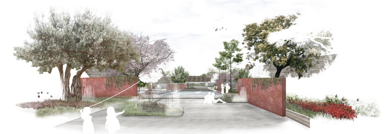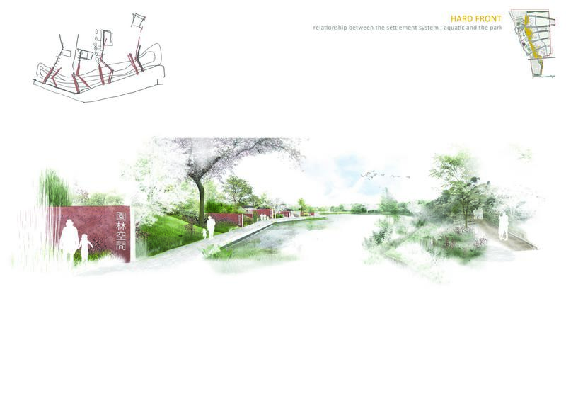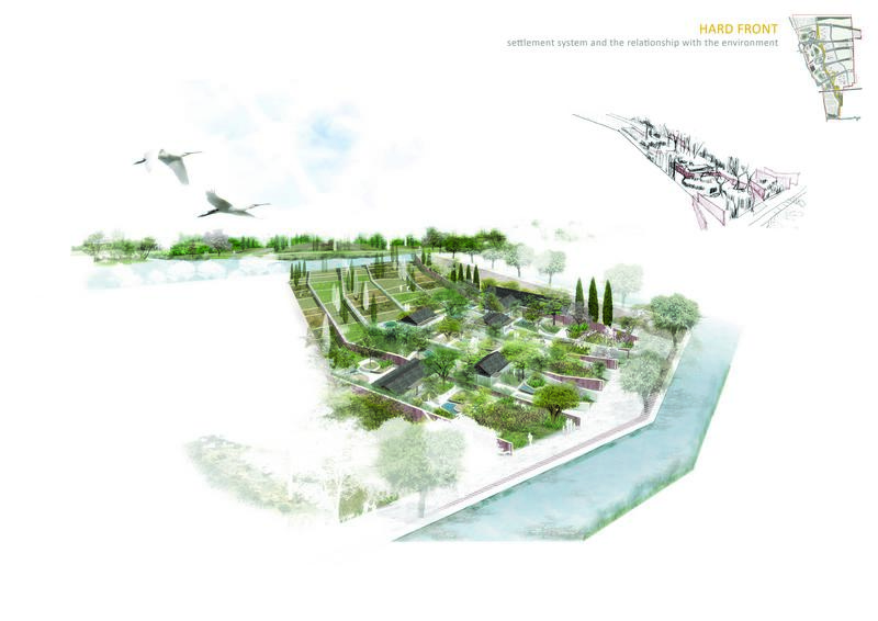 La strategia messa in atto nel progetto parte dallo studio del luogo, considerando come elementi fondamentali i canali esistenti di acqua, la tradizione storica delle water Town Cinesi, ed il tessuto agrario esistente.