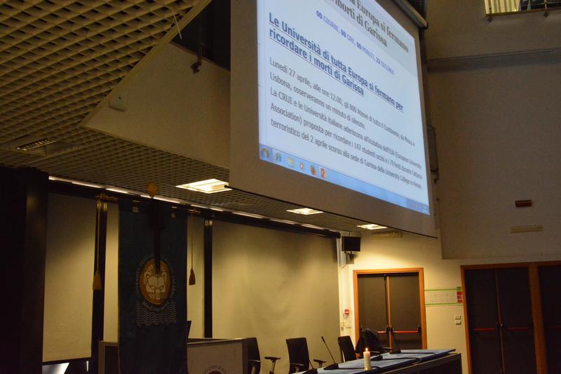 In adesione all’iniziativa promossa dall’EUA (European University Association), il Rettore invita la Comunità universitaria a ritrovarsi il prossimo lunedì 27 aprile, alle ore 11.30, nell’Aula Magna “A.Quistelli” della Cittadella Universitaria, per osservare alle ore 12, insieme ad altri 800 Atenei del Continente europeo, un minuto di silenzio in ricordo dei 147 Studenti barbaramente trucidati e dei 79 feriti durante l’attacco terroristico del 2 aprile scorso alla sede di Garissa della University College in Kenya.