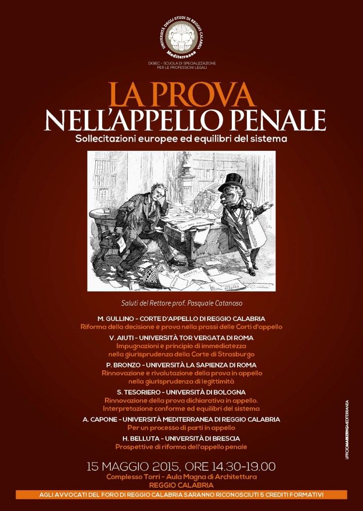 Ne discuteranno il dott. Gullino, magistrato della Corte di Appello di Reggio Calabria, e vari studiosi di diritto processuale penale provenienti da diverse Università italiane, i quali hanno già pubblicato importanti contributi sull'argomento.