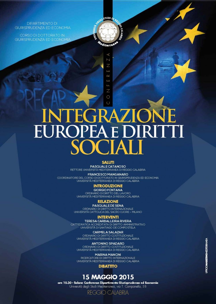 15 maggio Conferenza Integrazione europea e diritti sociali