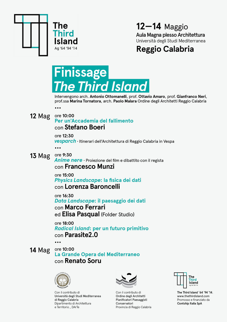 Nei giorni 12-13-14 maggio 2015 presso la sede del Dipartimento dArTe (ex Facoltà di Architettura) dell’Università Mediterranea di Reggio Calabria, finissage del progetto di ricerca The Third Island Ag 64’ 94’ 14’.
