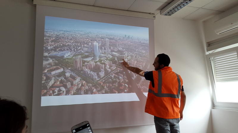 In una prima fase sono stati illustrati i dettagli del progetto con particolare attenzione alla gestione del cantiere, ai lavori di realizzazione della torre Isozaki (acquistata da Allianz come nuova sede), alla realizzazione dei parcheggi sotterranei, alla Torre Hadid (nuova sede di Generali) con la sua forma particolare, ed agli scavi per le fondazioni della torre Libeskid. Successivamente, caschetti antiinfortunistica in testa, la delegazione con la guida dell’arch. Pietro Catalano si è recata in cantiere per un sopralluogo e per approfondimenti tecnici. Il momento più emozionante è stato vissuto sicuramente all’interno della torre Isozaki che con i suoi 202 metri di altezza rappresenta l’edificio più alto d’Italia, grazie alla vista mozzafiato offerta dal 24 esimo piano.