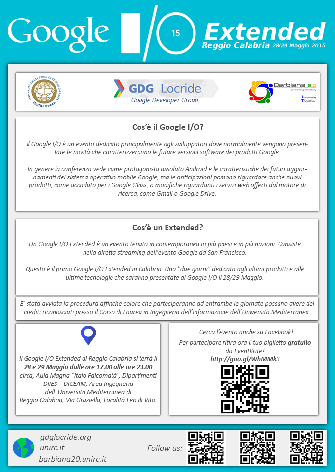 28-29 maggio Google I/O Extended in Aula Magna Falcomatà*