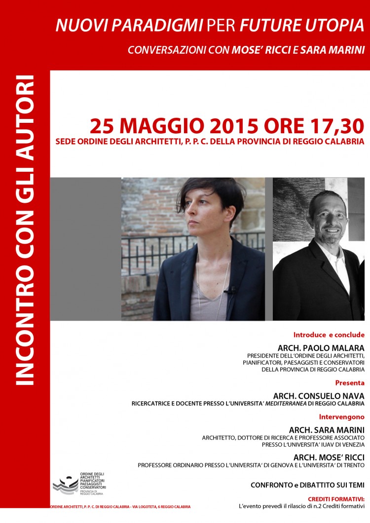 Saranno ospiti del seminario di studi i professori Mosé Ricci (Università di Genova e Trento) e Sara Marini (Università di Venezia IUAV), presenti anche nelle attività coordinate in città con l’Associazione Pensando Meridiano e con l’Ordine degli Architetti PPC di Reggio Calabria.