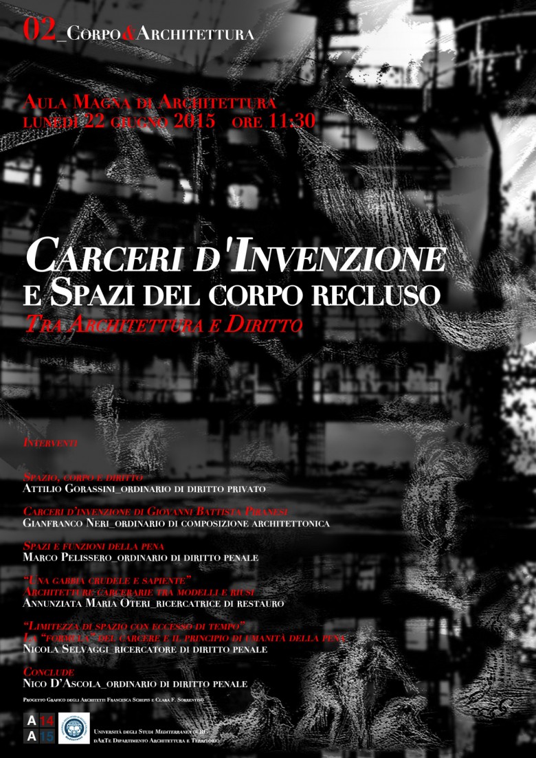 Lunedì 22 giugno alle ore 11:30 nell’Aula magna di Architettura, si terrà il Seminario di studio dal titolo Carceri d’Invenzione e Spazi del corpo recluso. Tra Architettura e Diritto.