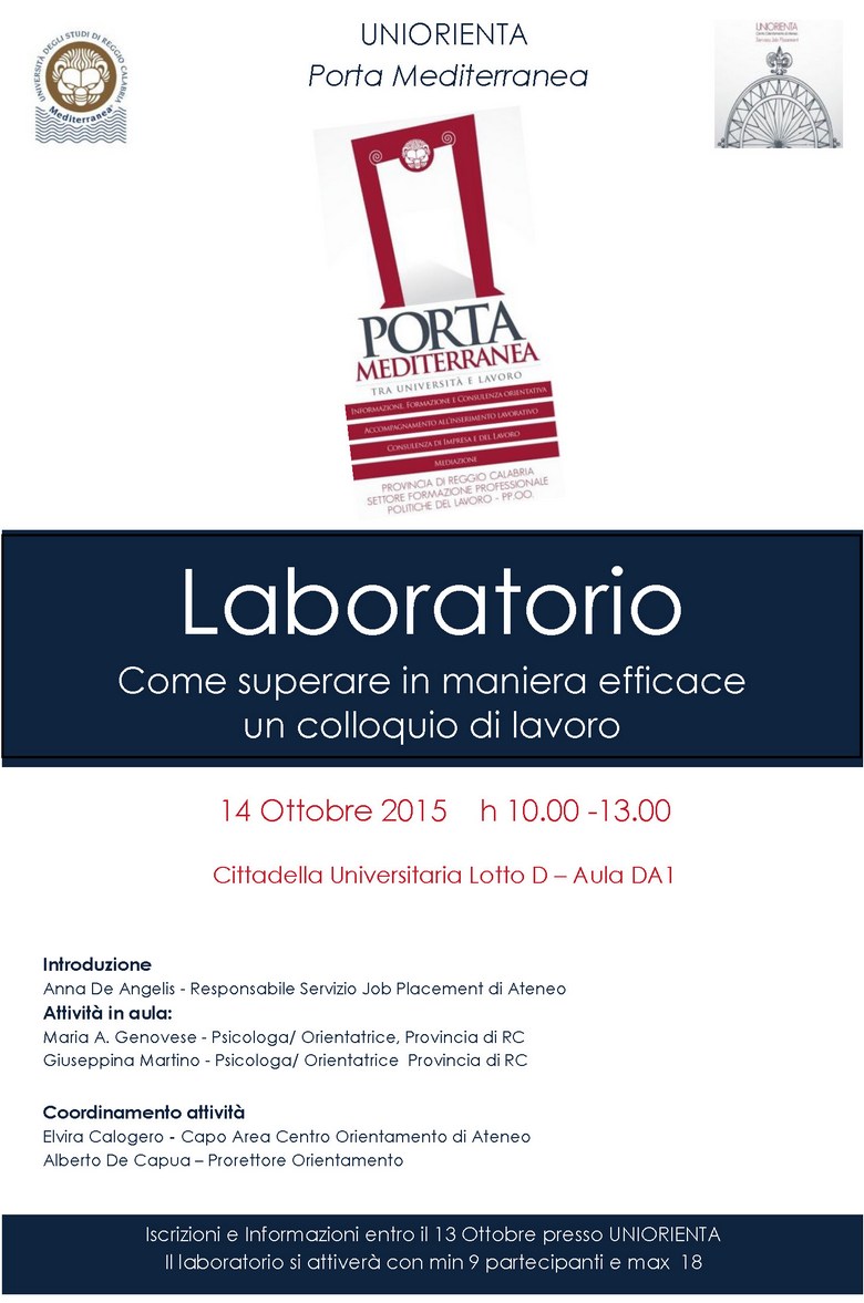14 Ottobre Affrontare in modo efficace un colloquio di lavoro - Laboratorio di UniOrienta