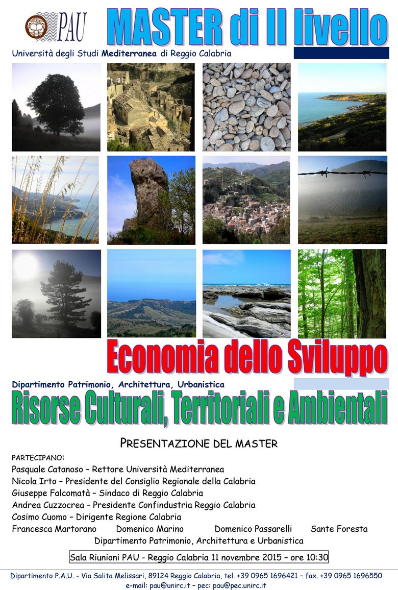 Presentazione Master di II livello in "Economia dello Sviluppo e delle Risorse Culturali, Territoriali e Ambientali"