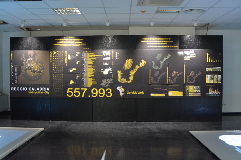 Oltre all’esposizione dei pannelli grafici, la mostra, in particolare, è incentrata sulla costruzione di un modello tridimensionale in scala 1:50.000 (dimensioni m 2.80X2.80) del territorio della città metropolitana che, attraverso l’utilizzo di proiezioni digitali, farà da supporto ad una lettura incrociata dei dati e degli elementi caratterizzanti i diversi luoghi e le condizioni territoriali.