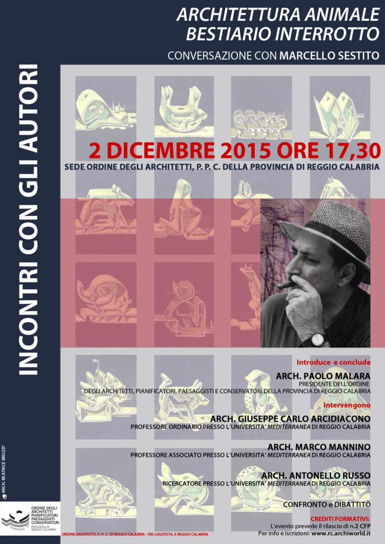 Il 2 dicembre alle 17.30, presso la sede dell'Ordine degli Architetti della Provincia di Reggio Calabria si terrà l'incontro con Marcello Sestito
