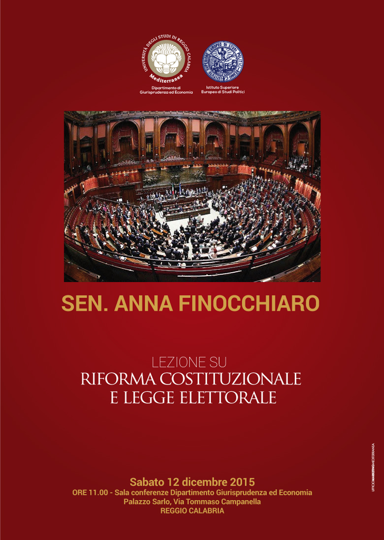 12 dicembre Riforma costituzionale e Legge elettorale - Lezione di Anna Finocchiaro