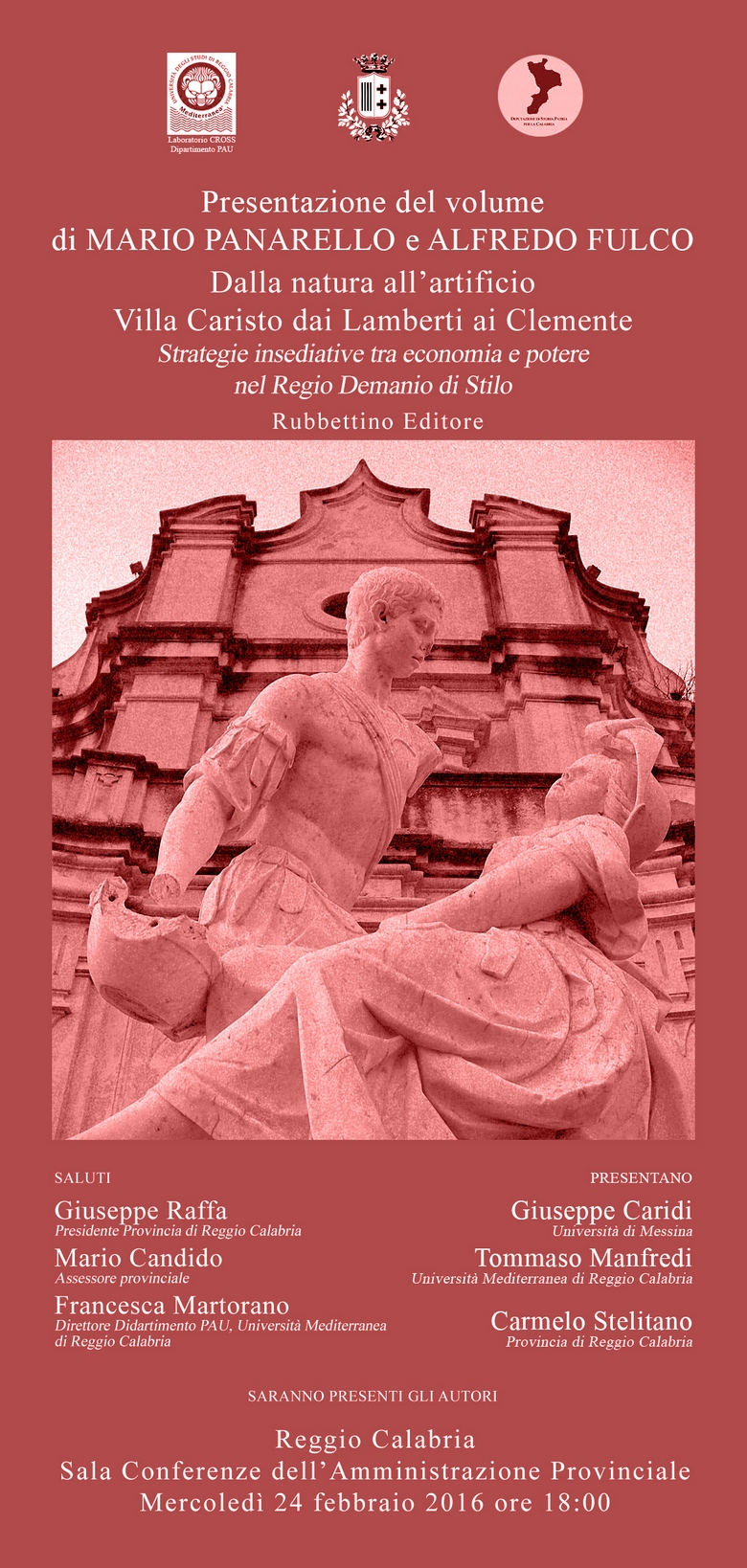 Il volume Dalla natura all’artificio. Villa Caristo dai Lamberti ai Clemente. Strategie insediative tra economia e potere nel Regio Demanio di Stilo di Mario Panarello e Alfredo Fulco è frutto di una lunga e approfondita ricerca, riflessa in un vasto corpus grafico e documentario. L’opera ruota attorno al tema delle residenze e delle famiglie nobiliari calabresi in un periodo compreso fra il XVII e il XIX secolo. Perno della ricerca è villa Caristo, una delle poche dimore extraurbane calabresi del Settecento di rilievo nazionale e internazionale.
