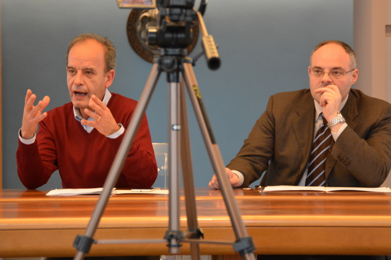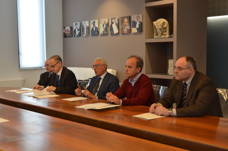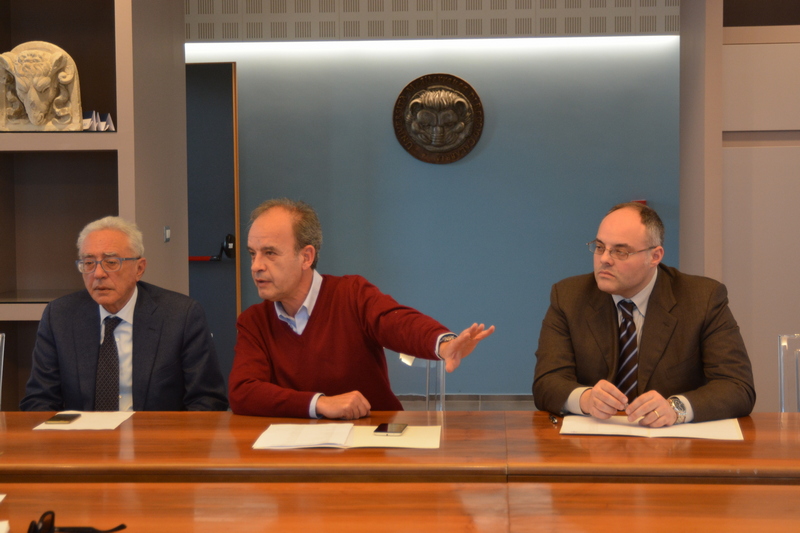 Per presentare il doppio appuntamento alla stampa, l'8 marzo, nel Salone degli Organi collegiali si è tenuta la conferenza stampa alla presenza del rettore, prof. Pasquale Catanoso, del direttore generale Marcello Zimbone e del direttore del Dipartimento di Giurisprudenza ed Economia, Francesco Manganaro.