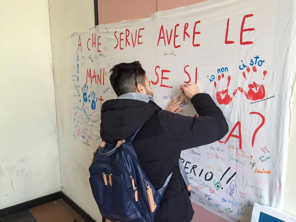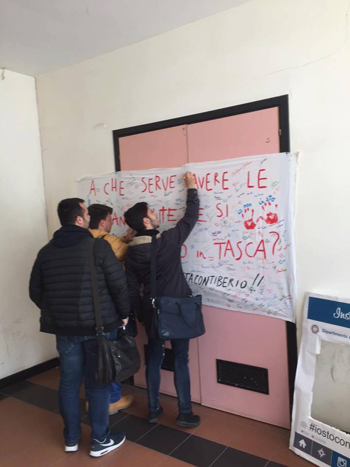 Ieri, 15 marzo, è stata (ri)aperta la Sanitaria S. Elia in un bene confiscato alla criminalità, sito sul Lungomare Matteotti: alcuni studenti hanno consegnato a Tiberio ed Enza uno striscione ricco di firme ed espressione di solidarietà e vicinanza. Ecco alcune foto dell'iniziativa: