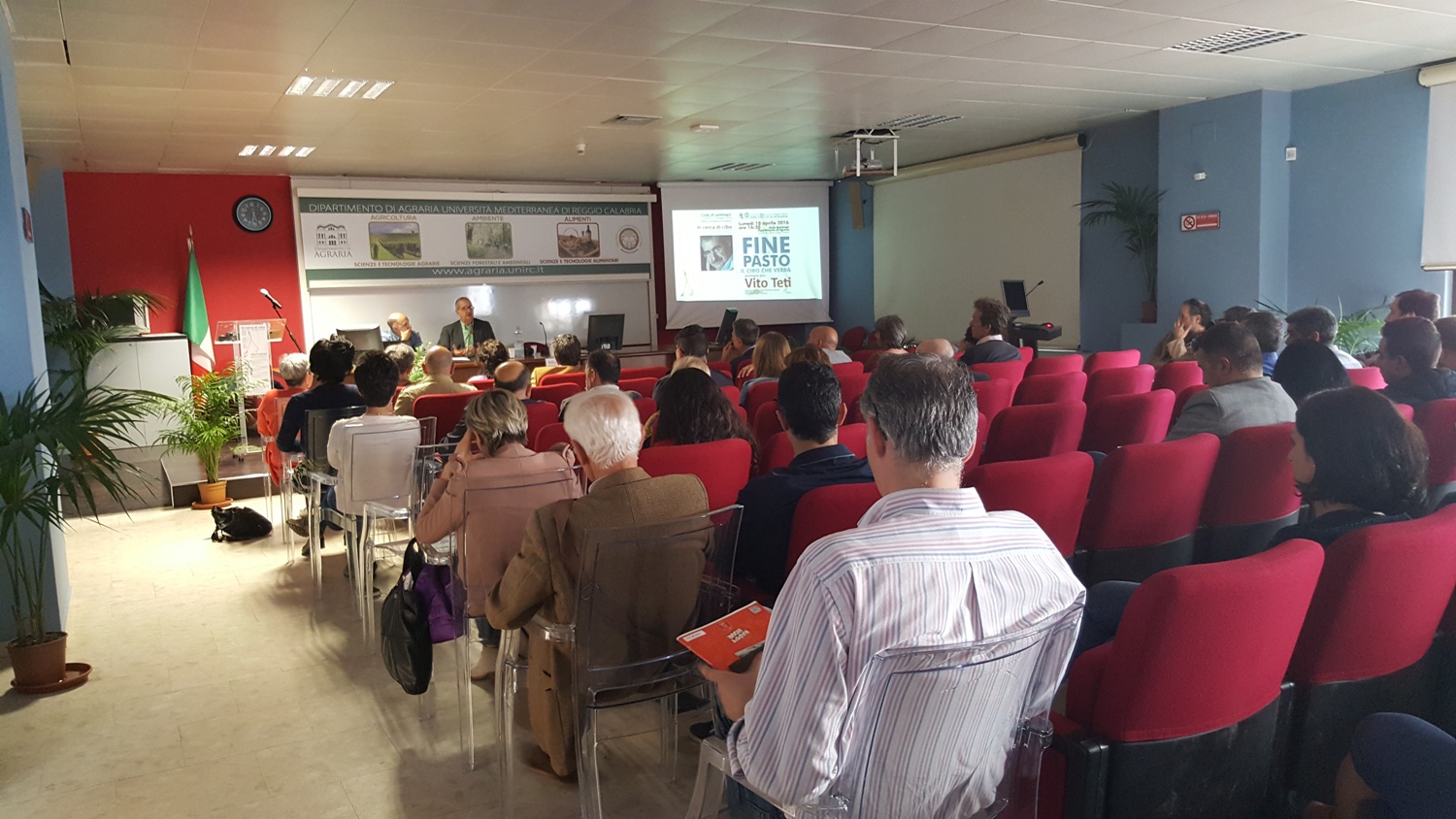 Al Dipartimento di Agraria di Reggio Calabria Vito Teti ha presentato il suo ultimo libro. Lunedì 18 aprile, presso il Dipartimento di Agraria dell’Università Mediterranea di Reggio Calabria, si è svolto il secondo incontro del ciclo di seminari “In cerca di cibo: tra i libri, dalla terra alla tavola, per una società conviviale”, promosso dalla Biblioteca di Agraria. L’iniziativa ha avuto come protagonista il Prof. Vito Teti, ordinario di Antropologia culturale presso l’Università di Cosenza, il quale ha presentato il suo ultimo libro “Fine pasto: il cibo che verrà”. Il testo, pubblicato da Einaudi, rappresenta un momento di sintesi del lavoro che dagli anni Settanta l’illustre studioso conduce sul tema del cibo, delle espressioni culturali e della vita sociale che vi ruotano attorno. L’interesse antropologico di Teti riguardo al rapporto tra uomini e cibo risale infatti al periodo dei suoi studi universitari e all’incontro con l’etnologo Diego Carpitella; nel tempo, esso si è poi sviluppato con continuità, portando l’Autore non solo ad affinare le sue riflessioni ma anche a raccogliere storie, testimonianze, documenti. Nel libro “Fine Pasto” diversi elementi e tratti culturali confluiscono in una narrazione suggestiva, cadenzata in brevi capitoli tematici, dove vengono posti a confronto con una sorta di autobiografia alimentare dell’autore; egli, infatti, vi offre una riflessione sulla propria esperienza personale nel rapporto con il cibo, così come è vissuta sia all’interno della comunità locale sia in relazione al più vasto mondo. In tal modo -scrive Teti riferendosi alla sua generazione nata nell’immediato secondo dopoguerra - “l’appartenere a due età e a due civiltà del cibo, con il suo carico di inquietudine, nostalgia e speranza, si scontra, nel nostro mondo, con la condizione, la sensazione, la paura di poter morire di abbondanza”.