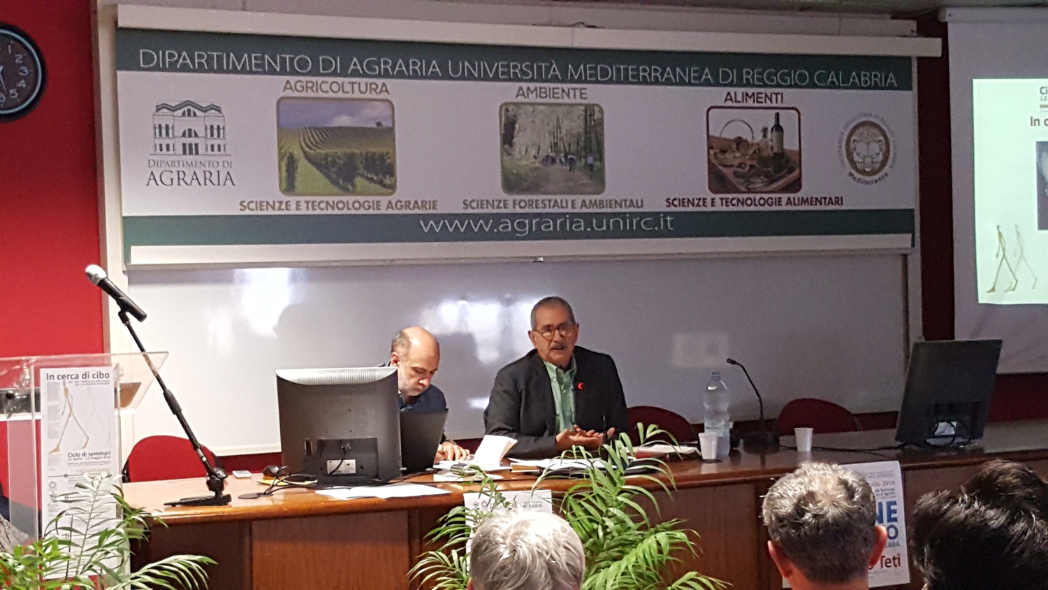 Al termine della presentazione il prof. Teti ha risposto alle domande del pubblico, attento e numeroso. Durante il dibattito sono stati toccati, tra gli altri, i temi legati alla valorizzazione dei territori e delle tipicità locali, dell’educazione alimentare, della cultura e degli usi alimentari calabresi, della documentazione e dello studio delle tradizioni popolari, del rapporto tra i soggetti sociali e le istituzioni. Al termine dell’incontro il Prof. Di Fazio, delegato ai servizi di Biblioteca del Dipartimento di Agraria, ha sottolineato l’importanza del punto di vista suggerito dal Prof. Teti, rilevandone la sintonia con il senso del ciclo di seminari promosso dalla biblioteca. In quest’ultimo, infatti, si privilegia un approccio multidisciplinare alla tematica alimentare: aspetti diversi - produttivi, culturali, etici, ambientali - sono chiamati a confrontarsi e a dialogare. In tale direzione, il prossimo incontro del ciclo di seminari rappresenta un ulteriore interessante sviluppo dei temi trattati: giovedì 28 aprile alle 17 il Prof. Stefano Bocchi dell’Università di Milano (agroecologo, curatore scientifico del Parco della Biodiversità di Expo2015) terrà un seminario sul tema “Il paesaggio è una tavola imbandita: alimenti, biodiversità, agri-culture”.