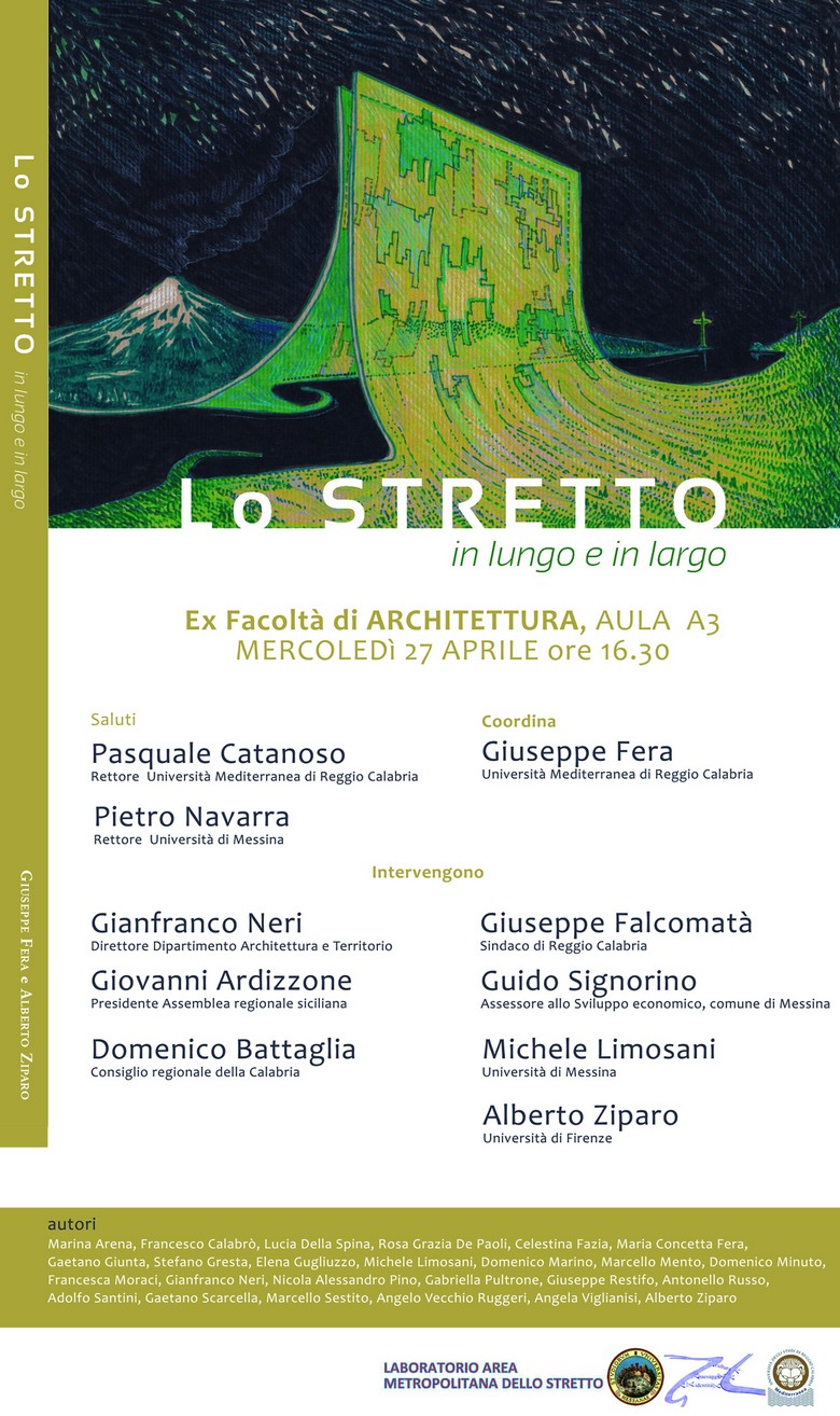 Il libro “Lo Stretto in lungo ed in largo”, edito dal Centro stampa di Ateneo, che si presenta mercoledì 27 aprile (Aula A3 di Architettura) alle 16.30, raccoglie i contributi di docenti e ricercatori che hanno partecipato al ciclo di seminari promosso dal Laboratorio Area metropolitana dello Stretto. Il Laboratorio, un centro di studi e ricerche promosso congiuntamente dalle due università di Reggio Calabria (DARTE- Dipartimento Architettura e Territorio) e Messina, coordinato dal prof. Giuseppe Fera, ha come finalità quella di sviluppare ed approfondire i principali temi legati alla creazione dell’Area integrata dello Stretto, la cui prospettiva di costituzione, dopo decenni di dibattito, può oggi contare su alcuni atti concreti importanti.