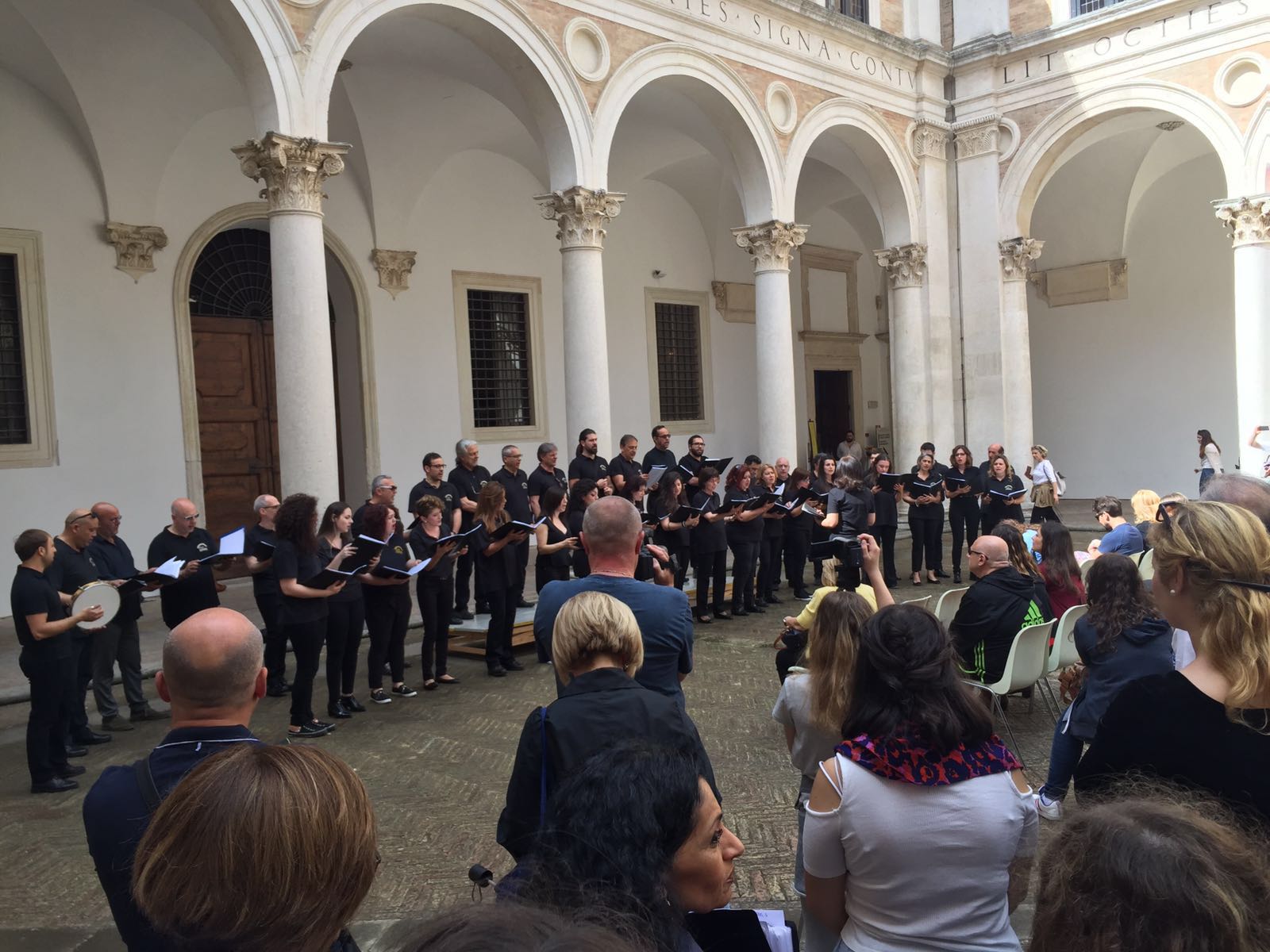 “Là dove senti cantare fermati. Gli uomini malvagi non hanno canzoni”. Sarà banale ma per raccontare la rassegna Unincanto 2016, svoltasi ad Urbino per il terzo anno consecutivo dal 28 al 29 Maggio, non si può non partire dalla frase di Leopold Sedar Senghor, che è stata anche il sottotitolo, il fil rouge di quest’edizione dove canto, cultura ed università si sono nuovamente incontrati nella splendida cornice della città marchigiana.
