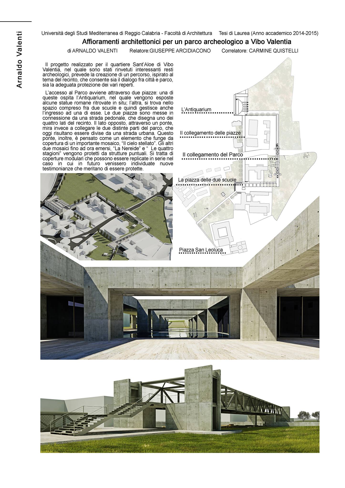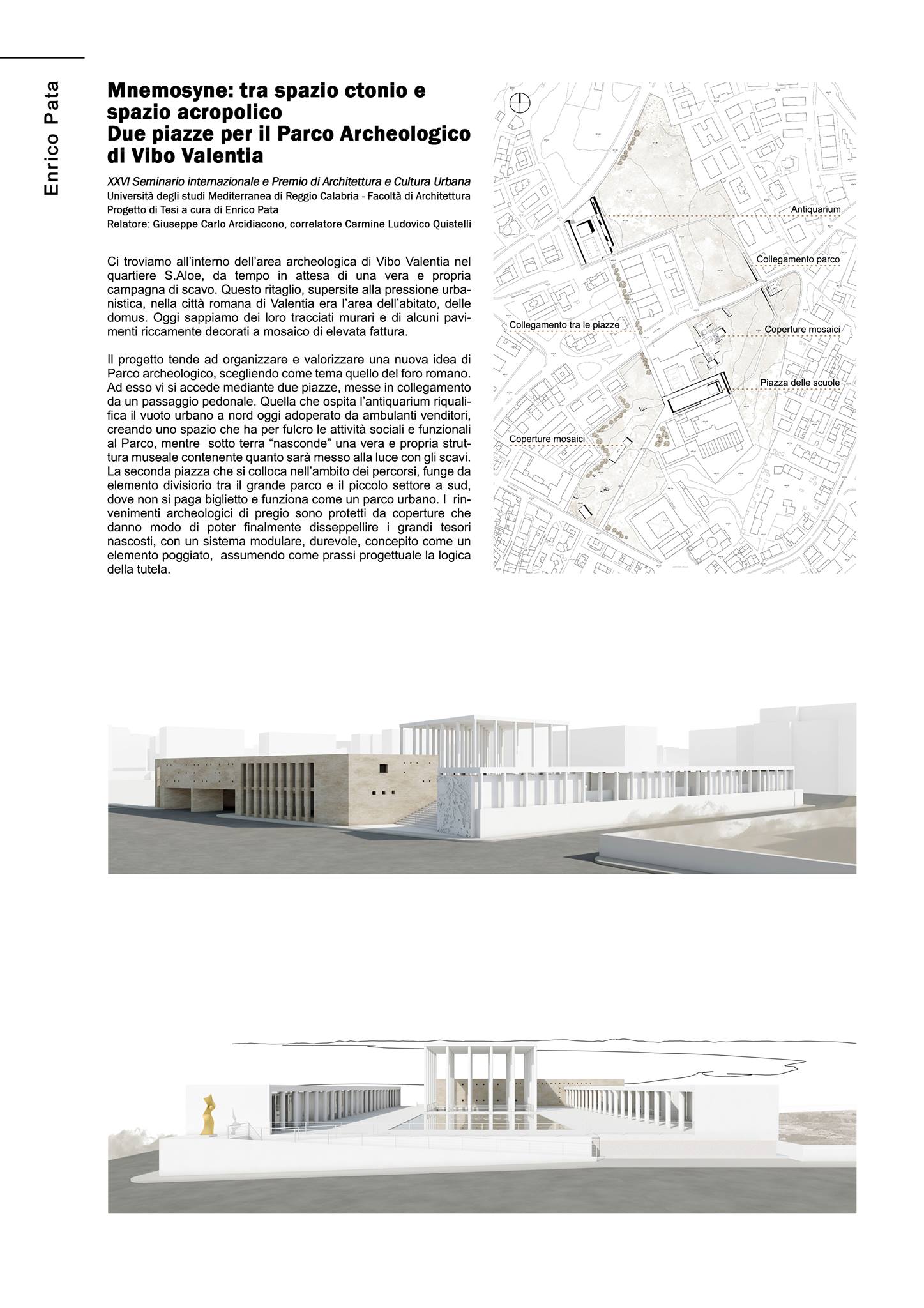 Gli elaborati sono stati realizzati all'interno dell'Atelier di tesi "Magna Grecia. Il dialogo Antico - nuovo del progetto di architettura con l'archeologia" tenuto dai docenti Giuseppe Arcidiacono e Carmine Ludovico Quistelli.