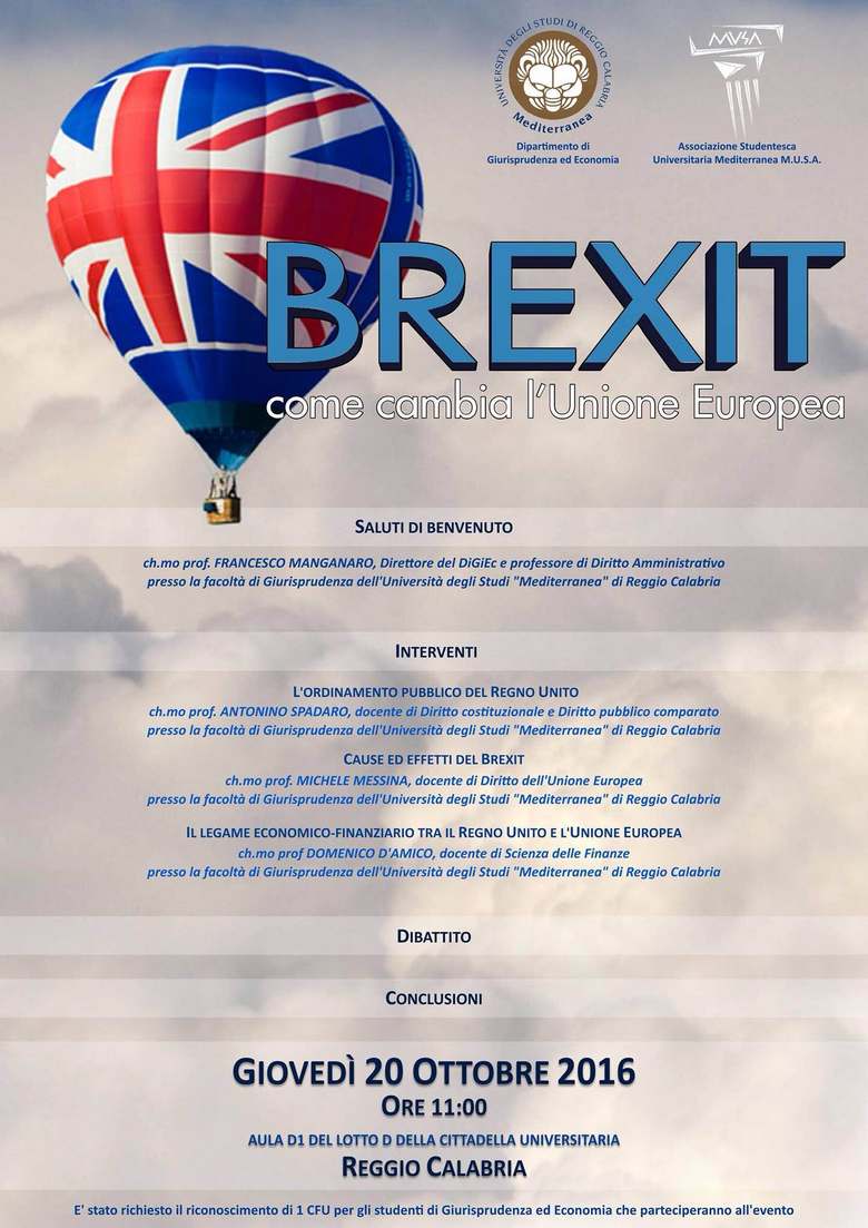 • il prof. Michele Messina, docente di Diritto dell’Unione Europea presso la Mediterranea su: "Cause ed effetti del Brexit"