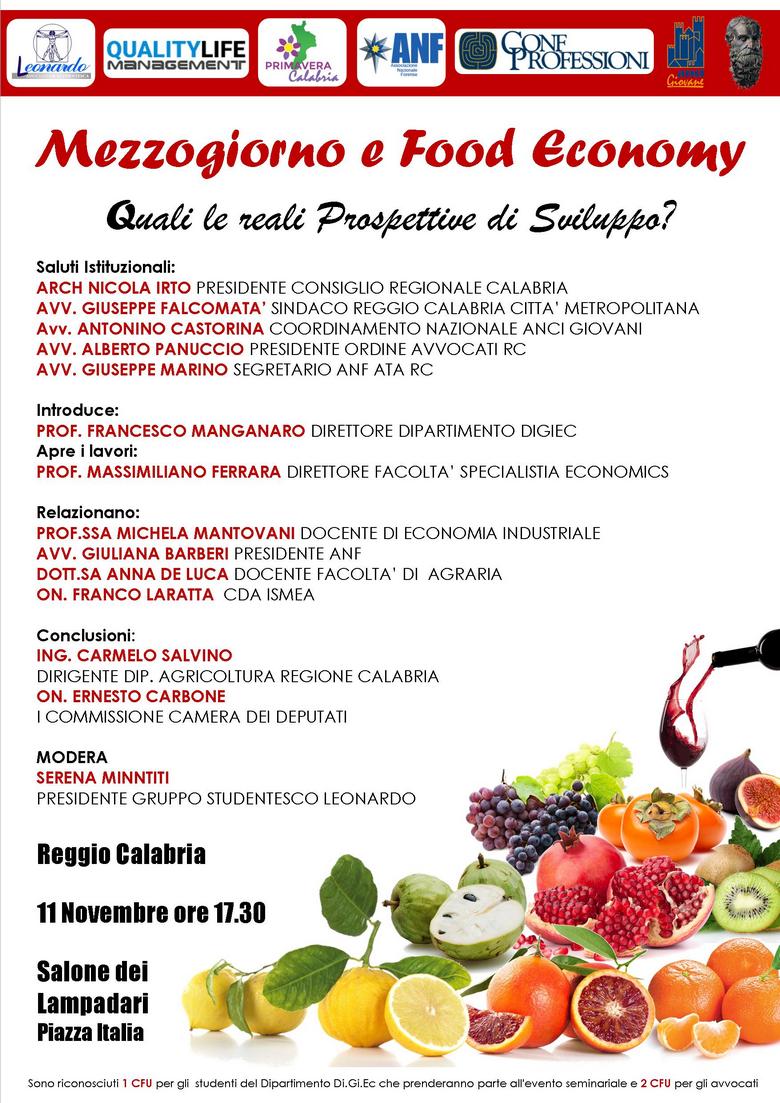 L'Associazione Leonardo di concerto con l'Associazione Nazionale Forense di Reggio Calabria e l'Associazione "Primavera Calabria" presentano: Mezzogiorno e Food Economy: Quali le reali prospettive di Sviluppo?", un approfondimento sul tema dell'agricoltura e dello sviluppo del Mezzogiorno.